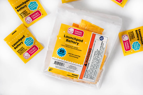 - Launchpad battery encloses coin cell battery in permanent cover, helping prevent short circuits and improving safety of battery