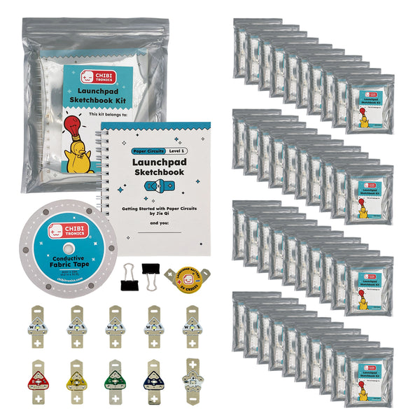 Our brand new Launchpad Sketchbook Kit is an all-inclusive educational kit designed to introduce paper circuit skills and concepts to total beginners. The classroom edition contains materials for 40 students.